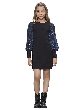 Джемпер из трикотажа с мерцающими блестками, со вставкой из сетки, капюшон со шнурком, спущенное плечо, длинные рукава с притачными манжетами, Изделие на подкладке. Подкладка 95% хлопок, 5% ПУ.