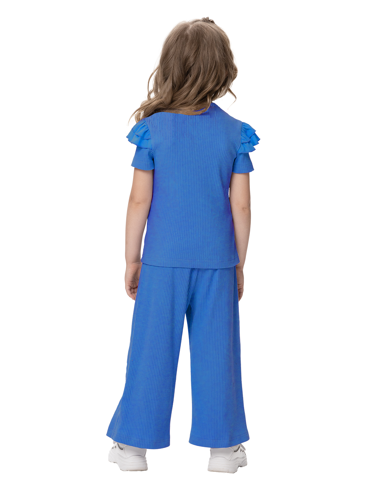 Укороченные, широкие брюки из фактурного трикотажа, в поясе кулиса с эластичной лентой.