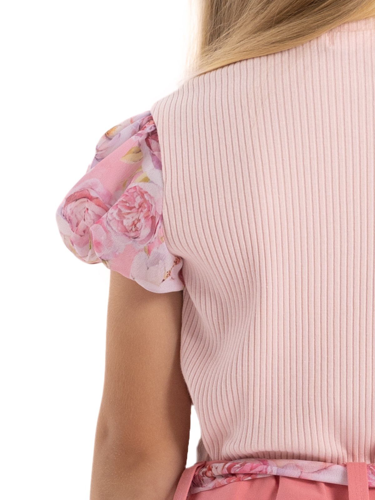 Футболка из фактурного трикотажа, короткие рукава "балон" из шифона, по горловине притачивается бейка.