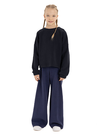 Джемпер из плотного и мягкого трикотажа с длинными рукавами, по горловине притачивается бейка, по низу изделия притачивается ажурное кружево шантильи.