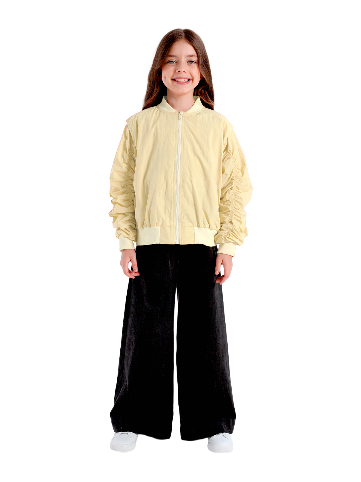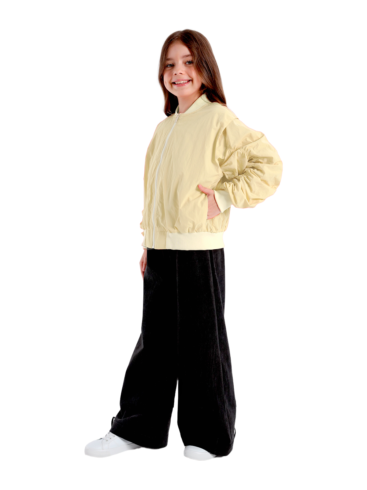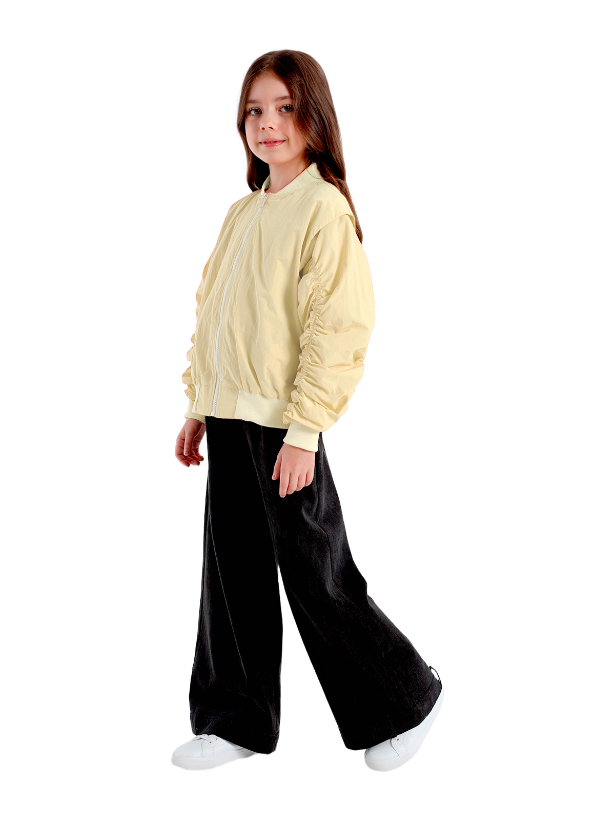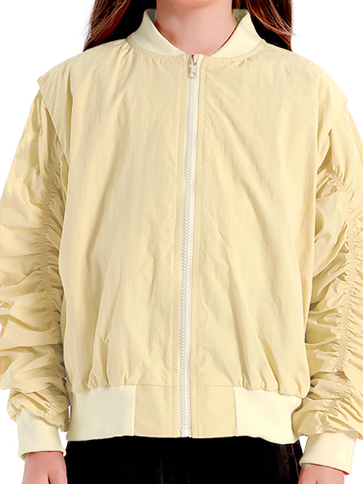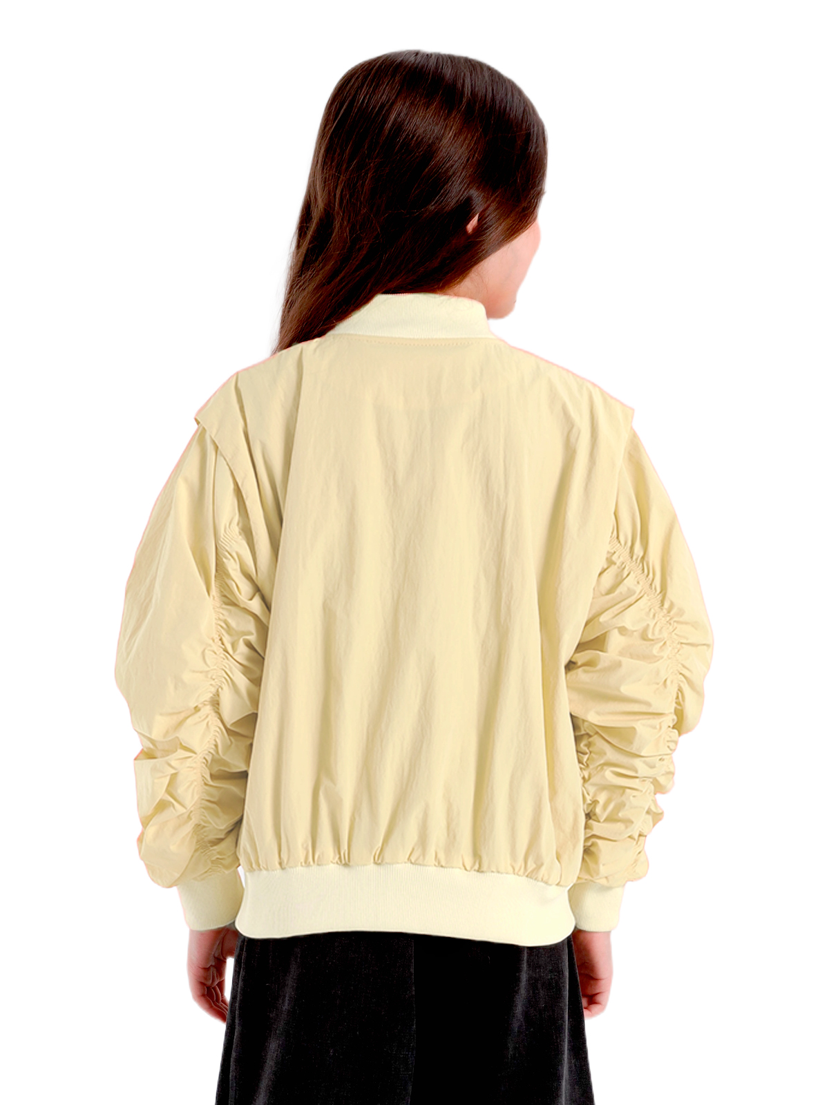 Куртка-ветровка выполнена из непромокаемой плащевой ткани, наполнитель холлофайбер 100 г/кв. м. Изделие рекомендуем носить от + 10°С до + 5°С., куртка имеет воротник стойку, спущенное плечо с напуском на рукава, длинные рукава с притачными манжетами, вдоль рукавов сборка на резинке, в боковых швах карманы, к низу притачивается пояс, застежка на молнию, изделие на подкладке.Подкладка 100% хлопок.