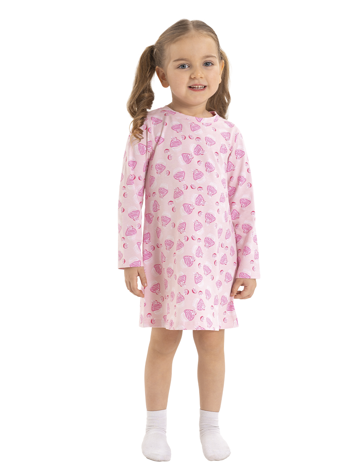 Ночная сорочка для девочки из тонкого трикотажа с втачными рукавами, прямой и свободный силуэт, горловина круглая, притачивается бейкой.