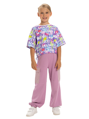 Брюки из плотного трикотажа, притачной пояс с широкой эластичной лентой и шнурком, на линии колен подрезы, два больших накладных кармана с клапанами, по низу брюк эластичная лента.