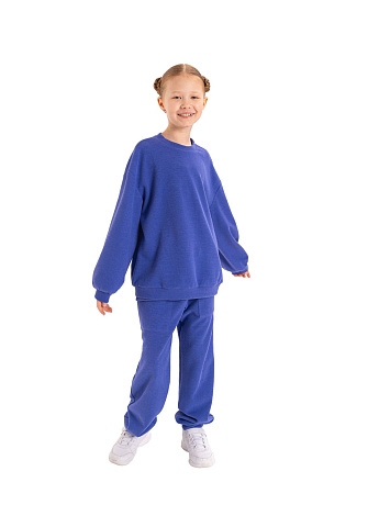 Свободные брюки из трикотажа с притачными манжетами, притачной пояс из плащевки с эластичной лентой, люверсами и шнурком. На передних половинках прорезные карманы с молнией.