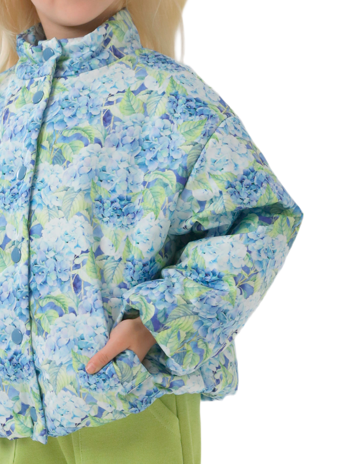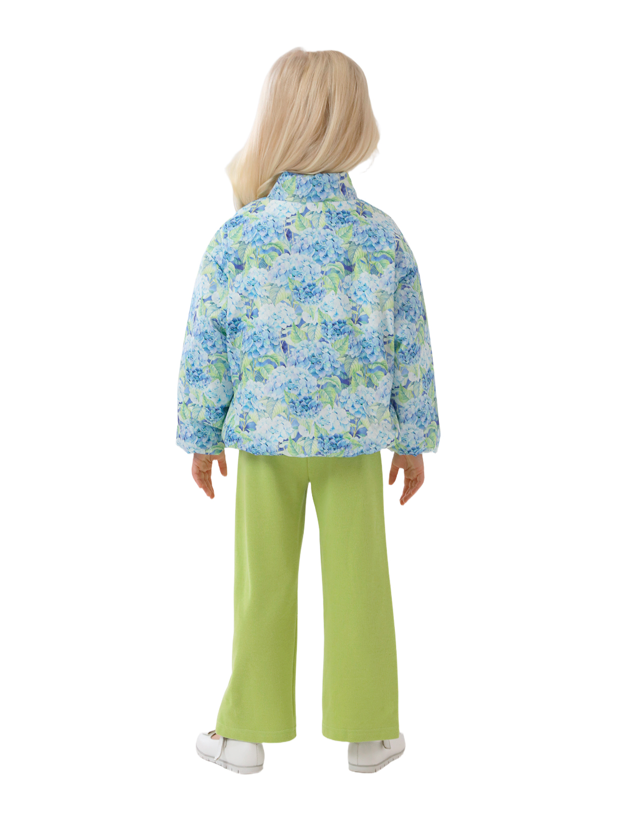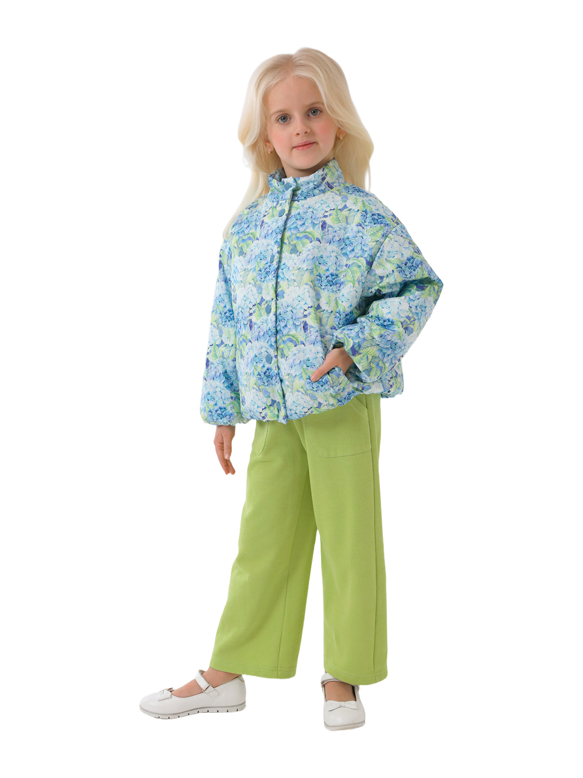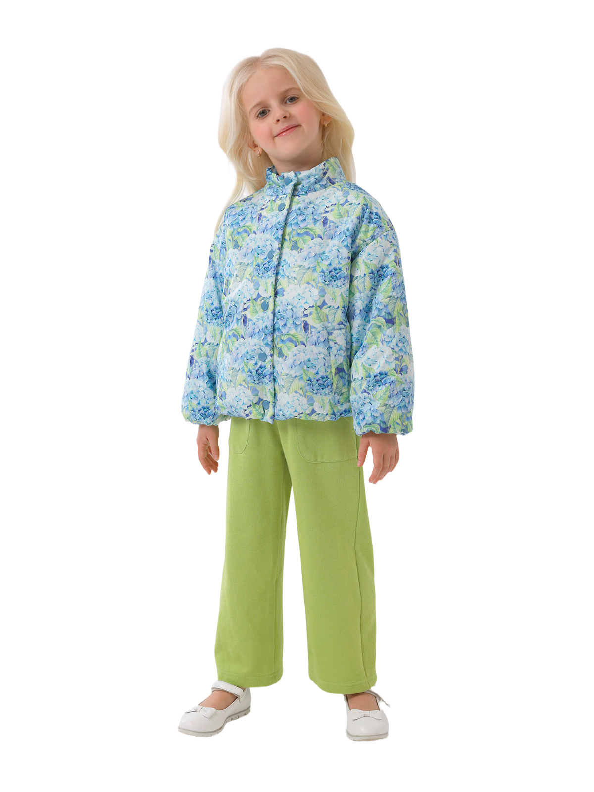 Куртка выполнена из непромокаемой плащевой ткани с дизайнерским рисунком, наполнитель холлофайбер 100 г/кв. м. Изделие рекомендуем носить от + 10°С до + 5°С., куртка имеет воротник стойку, застежка на кнопки, на полочках карманы с листочкой, длинные рукава со сборкой, по низу изделия эластичная лента, что создает эффект баллона, изделие на подкладке.Подкладка 100% хлопок.