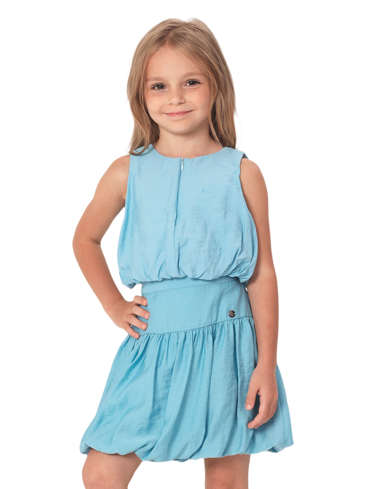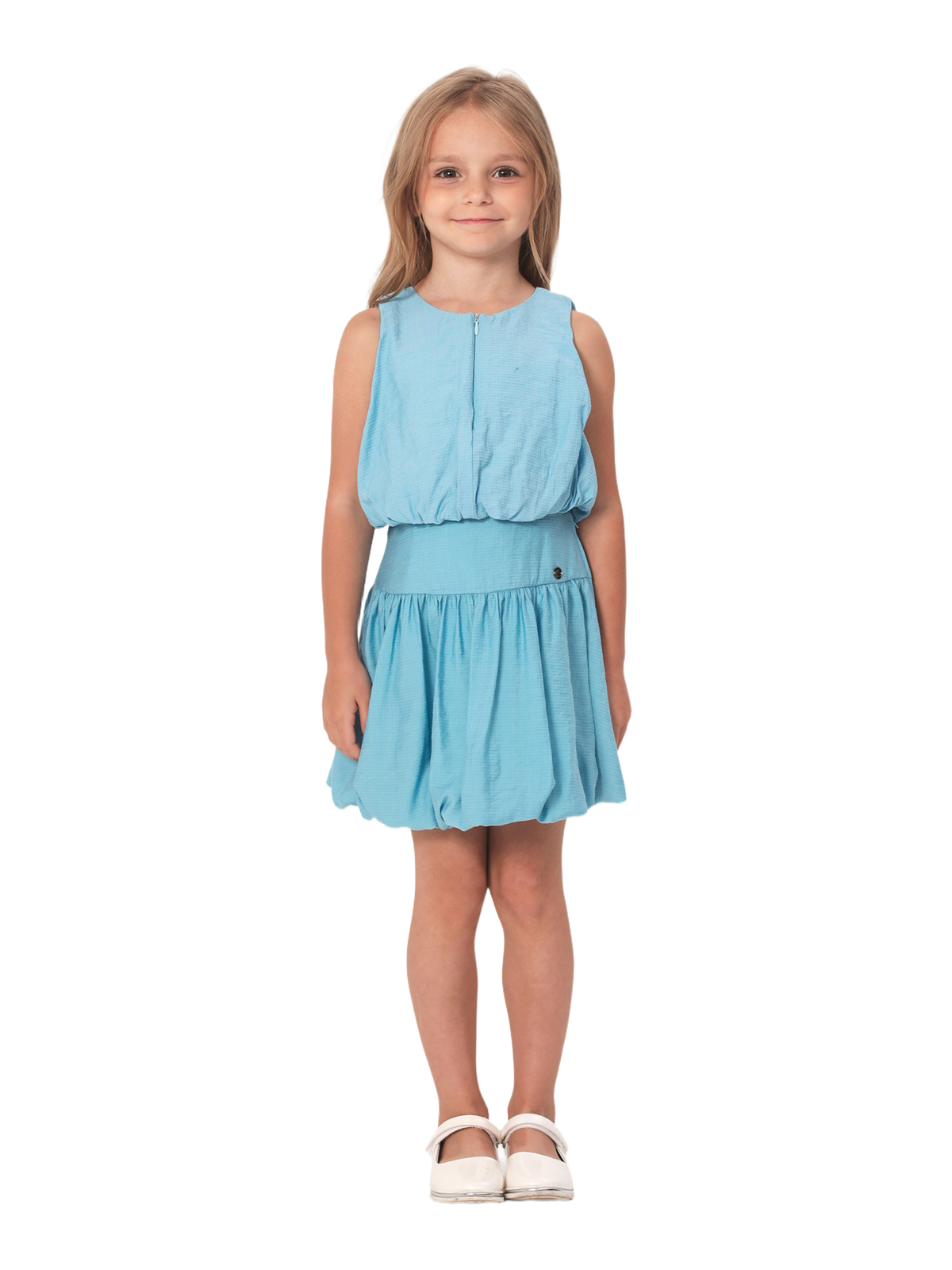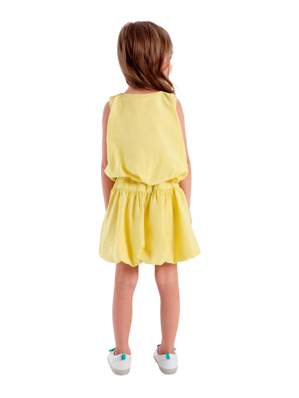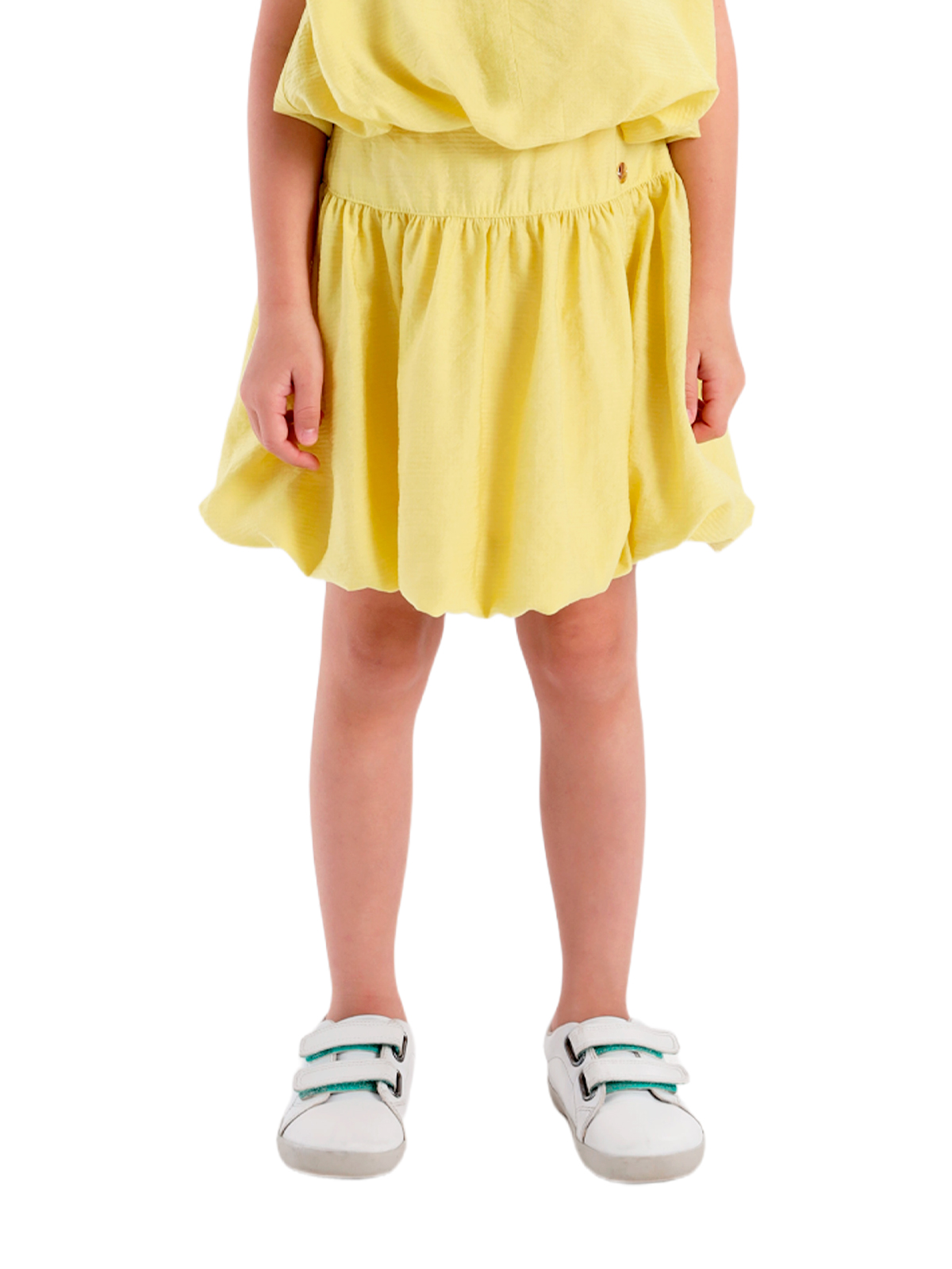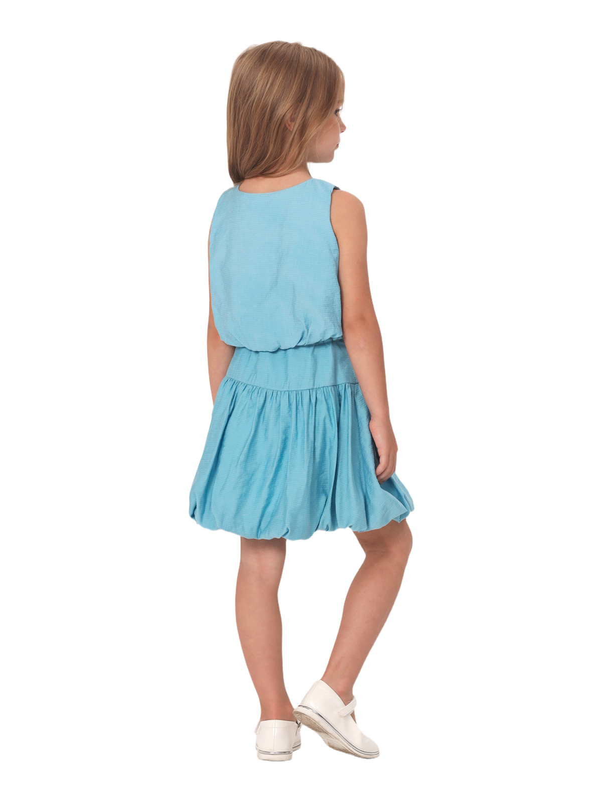 Комплект из легкой ткани, блузка баллон на подкладке, на полочке застежка на молнию, круглая горловина, юбка с притачным поясом, в поясе есть регулировка размера с помощью эластичной ленты на пуговицу, в боковом шве застежка на молнию, кокетка, нижняя часть юбки-баллон, изделие на подкладке. Подкладка 100% хлопок.