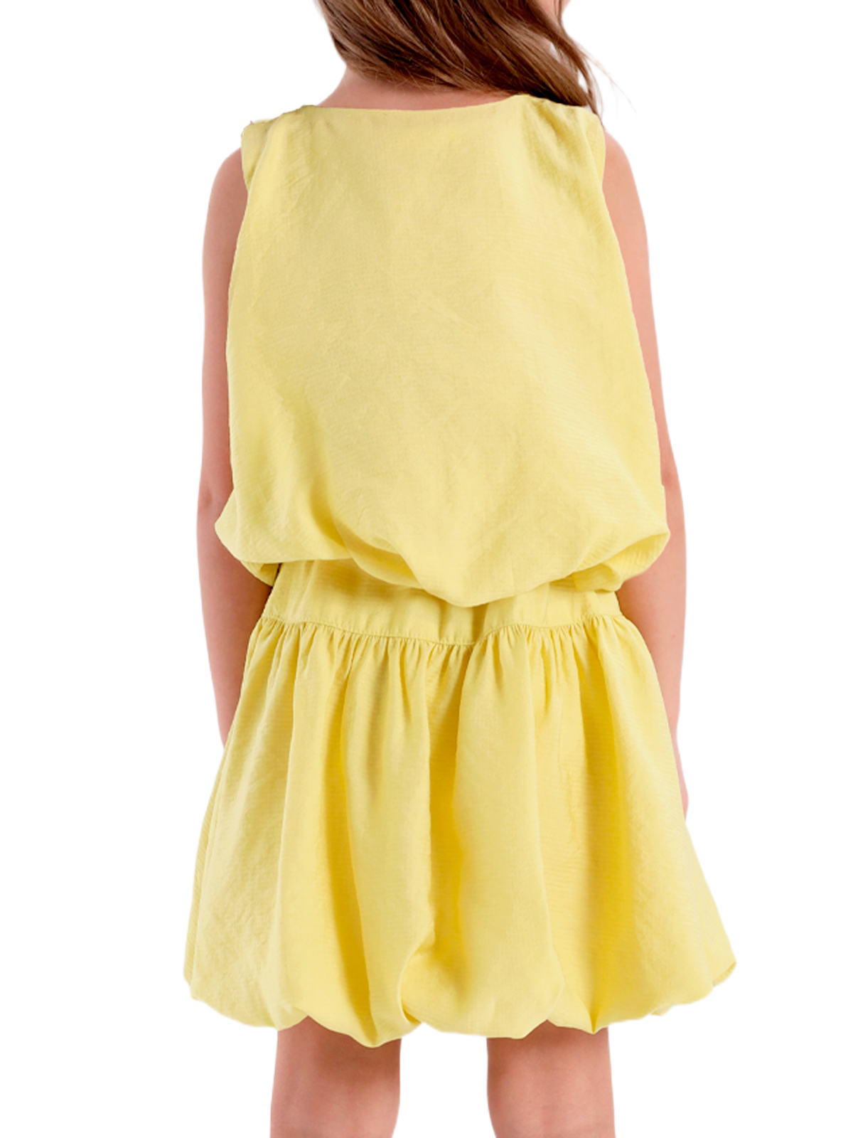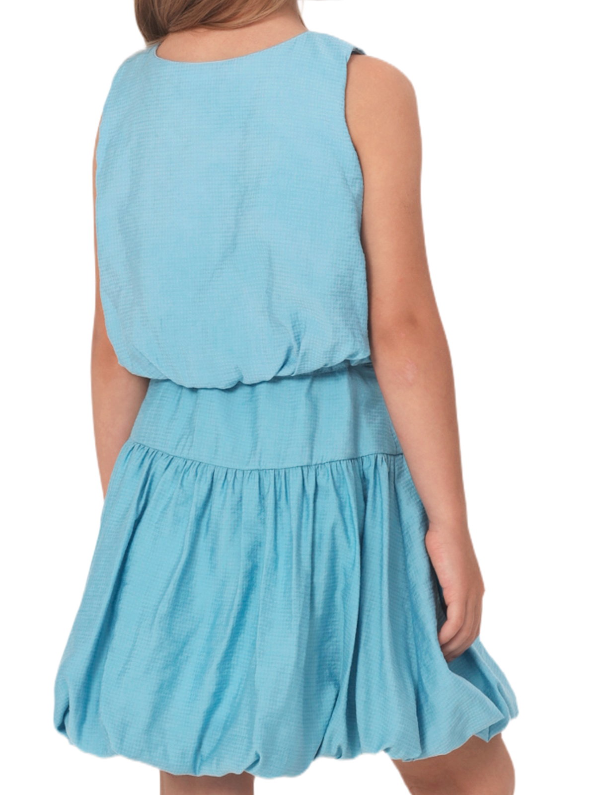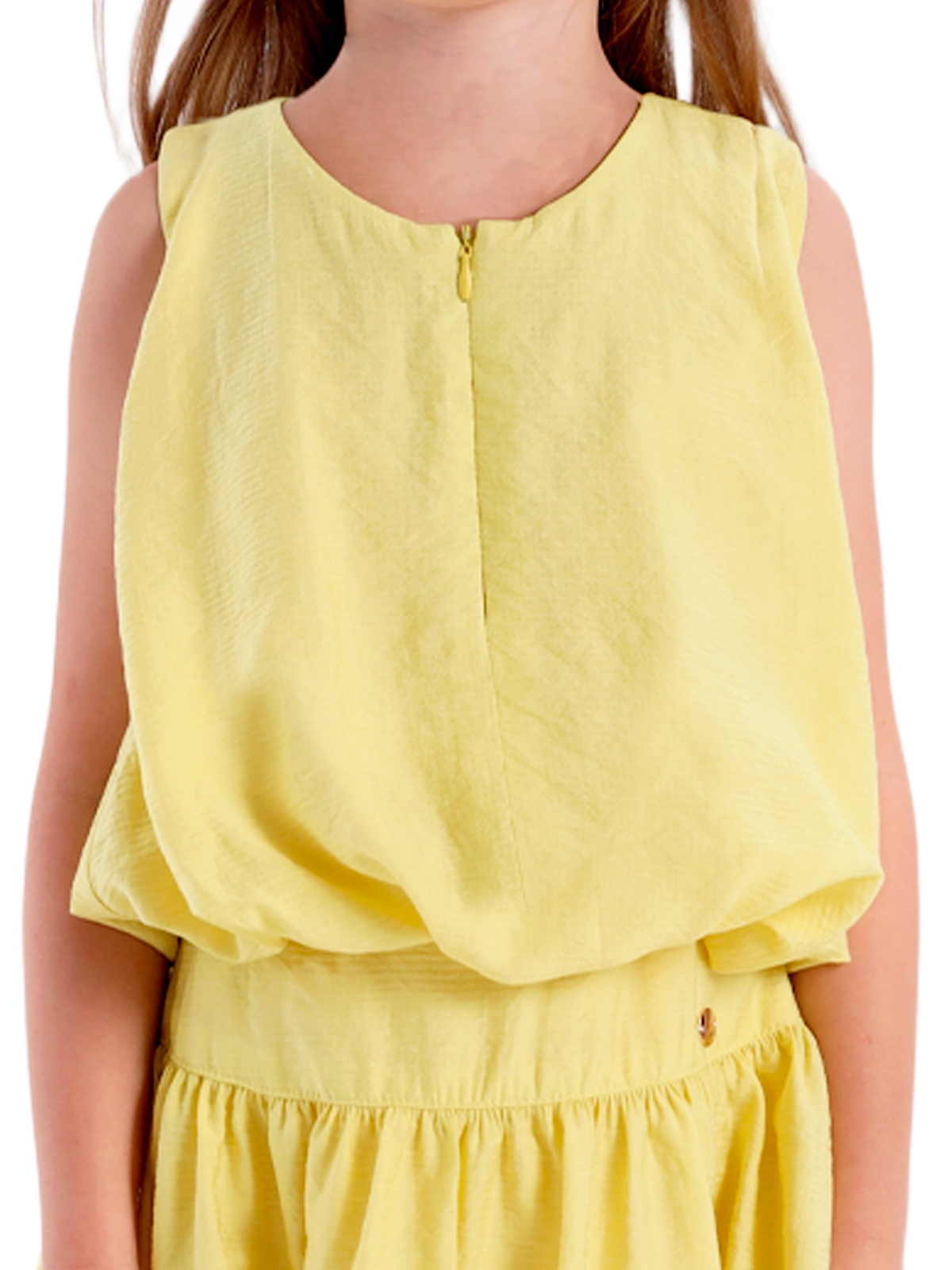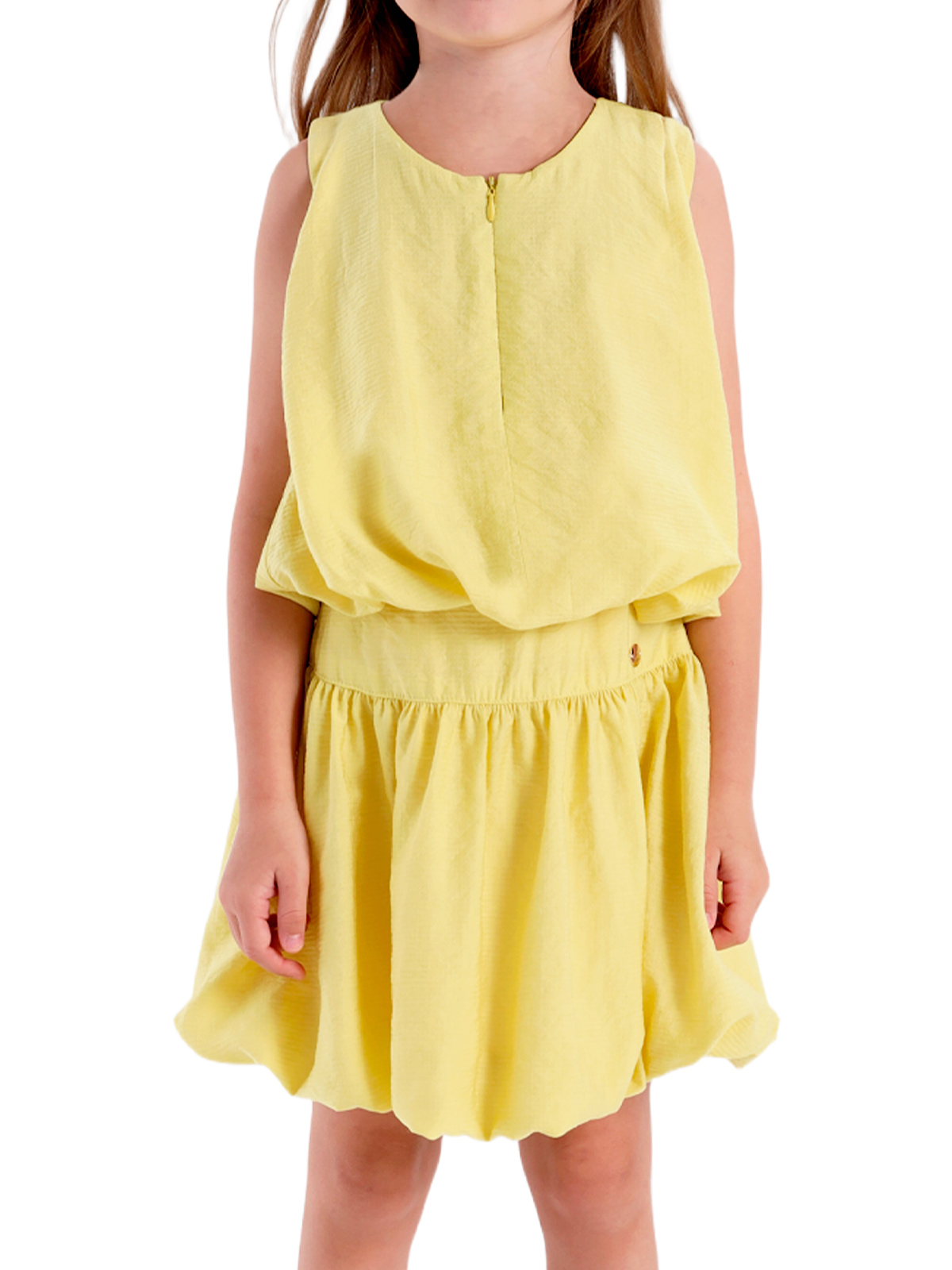 Комплект из легкой ткани, блузка баллон на подкладке, на полочке застежка на молнию, круглая горловина, юбка с притачным поясом, в поясе есть регулировка размера с помощью эластичной ленты на пуговицу, в боковом шве застежка на молнию, кокетка, нижняя часть юбки-баллон, изделие на подкладке. Подкладка 100% хлопок.
