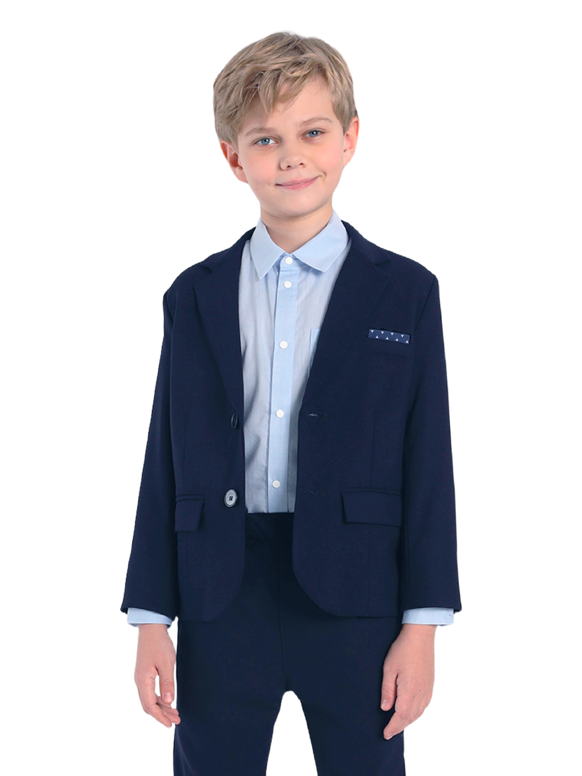 Пиджак из костюмной ткани, воротник с лацканами, застежка на две пуговицы, на левой полочке листочка с декоративным платком, два рабочих прорезных карманы с клапанами, на рукавах пуговицы, частичная Подкладка.подкладка 100% ПА